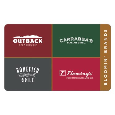 Bloomin Brands owns Outback Carrabbas Bonefish Grill and Flemings. We do not deliver to Canadian addresses. Up to 5 cash back These gift cards never expire and no fees for non-use will ever be charged.